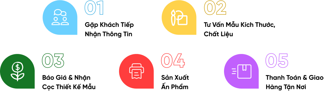 Đưa ý tưởng của bạn chúng tôi giúp doanh nghiệp tối ưu quy trình in ấn, tiết kiệm thời gian, đảm bảo chất lượng trong từng sản phẩm. Quy trình in ấn nhanh gọn 4 bước tại Nam Việt