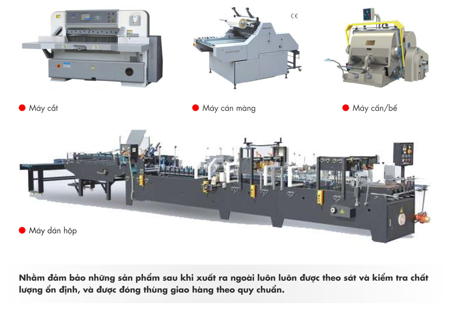 Để tiết kiệm chi phí khi phải vận chuyển hàng qua nhiều xưởng riêng biệt từng khâu như những đơn vị khác. Hiện nay Công Ty In Nam Việt đã đầu tư đầy đủ một xưởng thành phẩm sau in với đầy đủ những máy móc gia công sau in như sau: